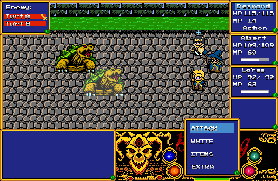 Albert! A disciple black mage, many find him annoying but he's been your best friend since childhood. He can use powerful magic to obliterate enemies, and focus to restore MP.