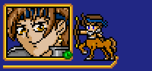 Clyde! He is a centaur and horse-archer from a distant forest, having left his home to seek adventure. He can inflict debilitating status ailments on enemies, or become a powerful defender or the weak with spear and lance.