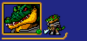 Hector! A man-gator from the swamp kingdom. He might look scary and is known to feast on fallen adversaries, but he would never harm a friend. He can learn to use the special skills the enemies use.